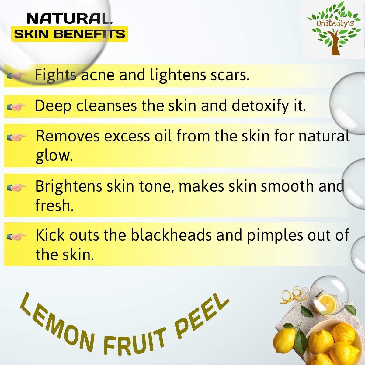 Unitedly’s Lemon Fruit Peel Powder Comes With An Array Of Advantages In Terms Of Skin Care. This Powder Caters To A Variety Of Skin Needs That Helps To Enhance The Beauty Quotient In An Absolutely Natural Manner. Dehydrated Lemon Powder Can Be Used For Skin Whitening Purposes That Help To Do Away With Marks, Blemishes And Spots By Adding A Degree Of Fairness To The Complexion Owing To The Surplus Of Vitamin C And Citric Acids That Lemon Peels Contain. Grated Lemon Peel Is Effective Enough To Treat Pigmentations And Sun Tan In An All Natural Manner. Lemon Peel Mask Works As The Ideal Cure For Oily Skin As It Helps To Do Away With Excess Oil Secretions And Thus Provides For The Ideal Remedy For The Oily Skin Woes. Therefore Organic Lemon Peel Powder Helps Reduce Acnes, Pimples And Other Breakouts For The Matter And Helps To Get You A Clean And Clear Skin. Not Only Does It Function As A Great Skin Cleanser, But Also When Used As A Lemon Peel Face Mask It Adds Instant Fairness In An All-Natural Manner. The Essential Goodness Of The Vitamins, Antioxidants That Are Present In Lemon Peel Helps To Cater To The Proper Nourishment And Nutrition Of The Skin For Maintaining The Proper Skin Health To Be Precise. Lemon Peel Happen To Work As A Natural Exfoliating Agent That Helps To Remove Excess Dirt, Oil And Other Impurities And Makes For A Great Scrubber In The Name Of Lemon Peel Off Mask.