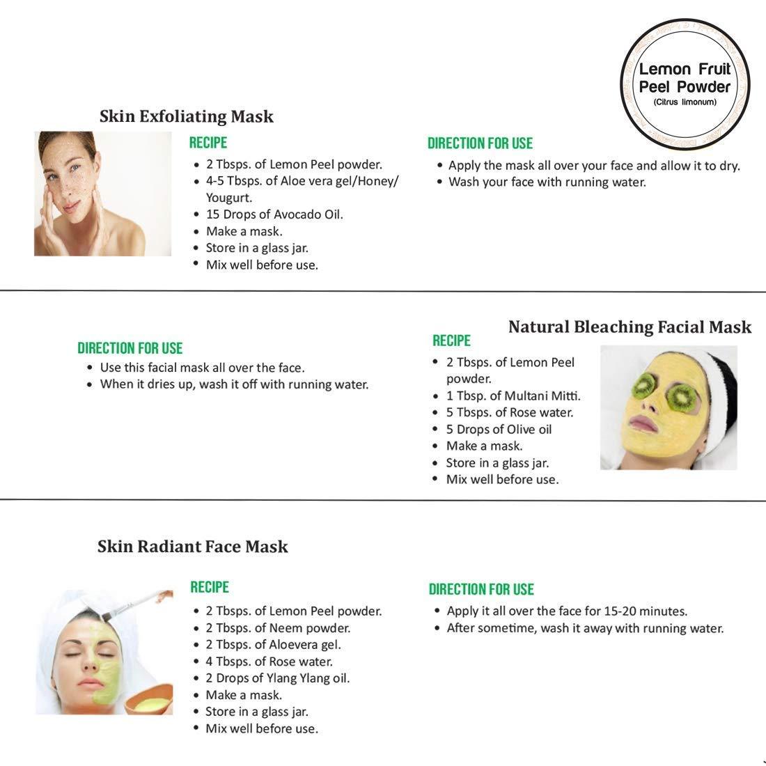 • 100% Chemical free lemon peel powder that contains no added chemicals, no Paraben, harsh metals or any other added synthetics.Applied For: Cleansing, Skin Polishing, Skin Toning, Deep Cleansing, Moisturization and Nourishment, Softening & Smoothening.