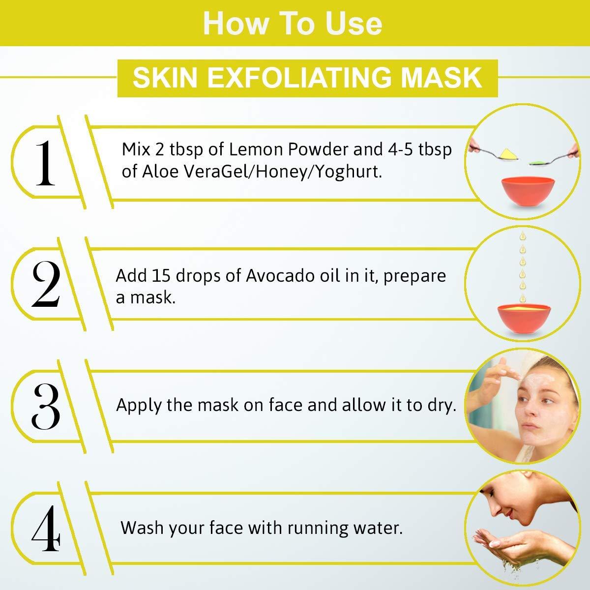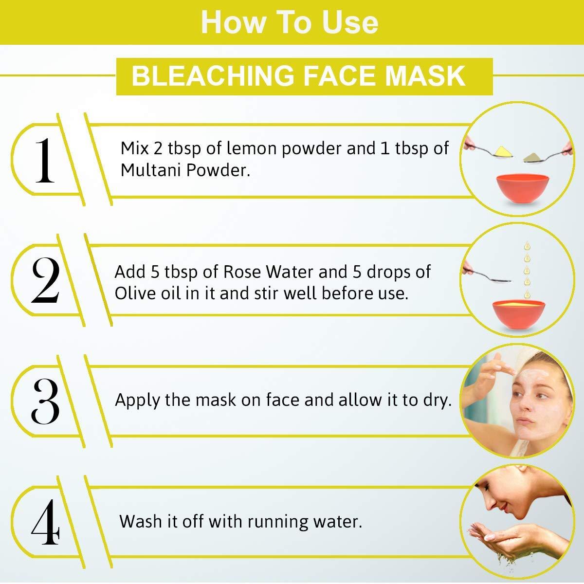 • 100% Safe and Pure dried lemon powder that has no side effects and is suitable on all skin kinds.