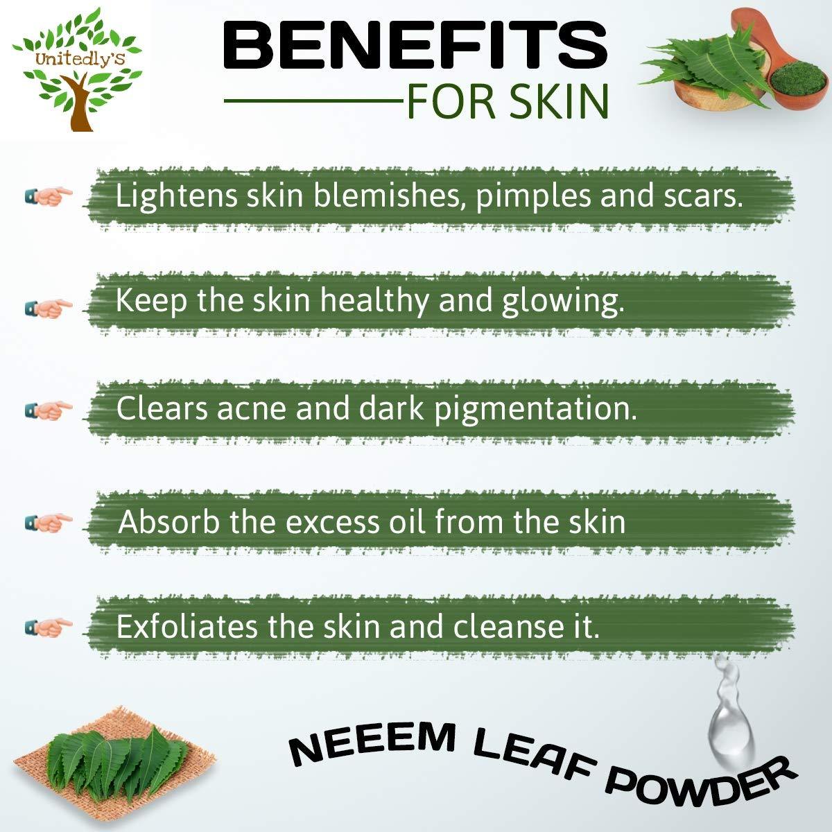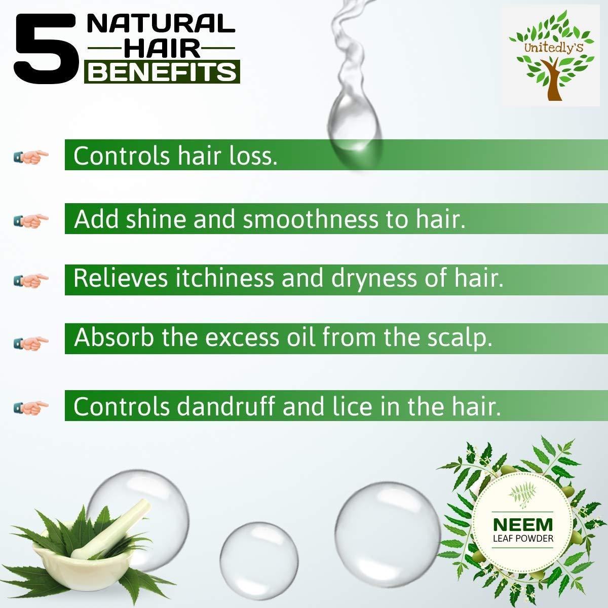 Unitedly’s Organic Neem Powder is a product designed to meet the needs of both the face and hair. With neem as its key element, it is completely organic in nature, consisting of other natural constituents.Neem powder is rich in elements that can lessen the hair fall and also sure the hair loss which is primarily due to the itchy and dandruff. Neem can also take away the excessive greasiness from the scalp. Hence the hair will not weigh down and they look voluminous.